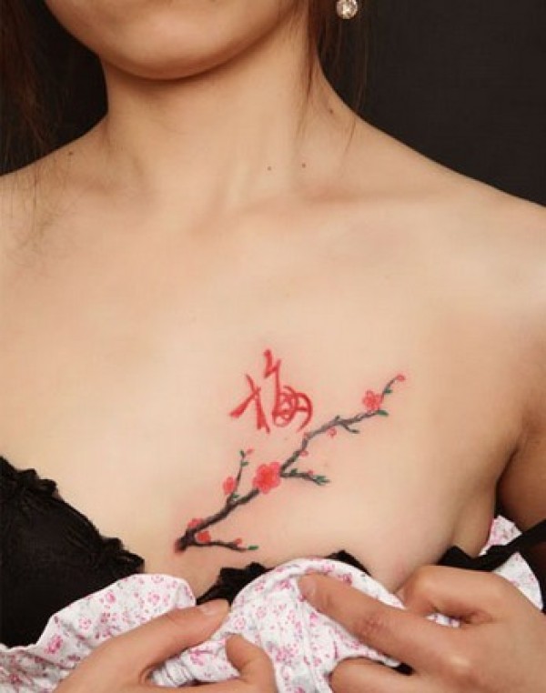 感性的女生胸部梅花枝条纹身小小的图案,大大_胸部纹身图案大全_纹身图吧