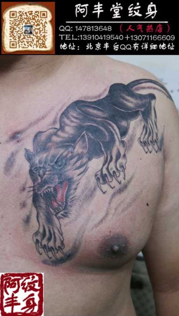 胸部野性十足的黑豹纹身纹身里的黑豹正在伺机_胸部纹身图案大全_纹身图吧