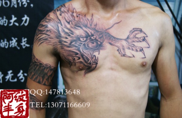 胸部过肩缠臂龙纹身图案过肩缠臂龙纹身是北京_胸部纹身图案大全_纹身图吧
