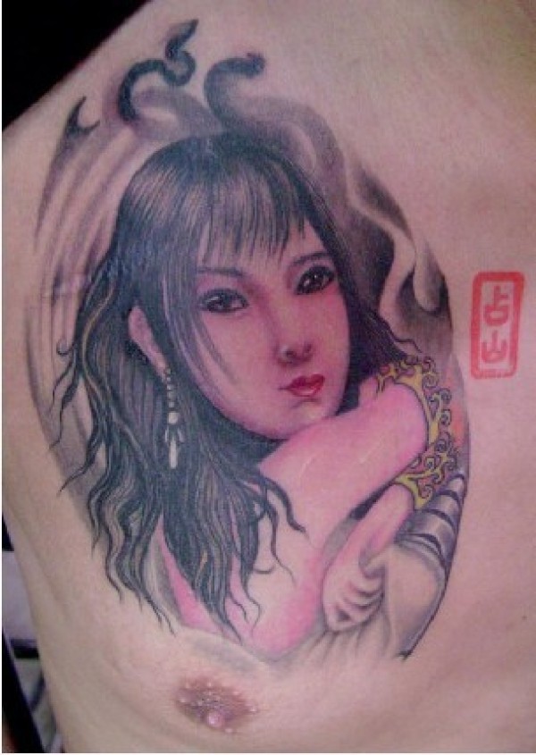 胸部彩绘美女图像纹身欣赏把你心中的女神也用_胸部纹身图案大全_纹身图吧