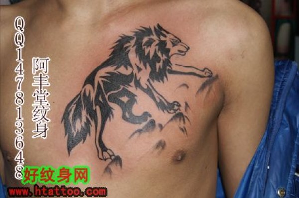 男人胸前超酷凶狠的狼头纹身图案_胸部纹身图案大全_纹身图吧