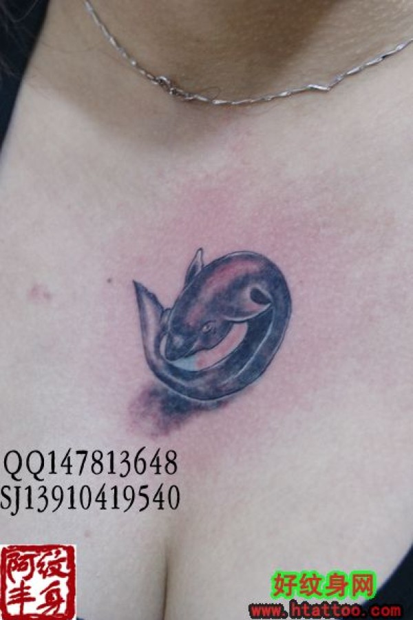 胸前覆盖纹身……小海豚_胸部纹身图案大全_纹身图吧