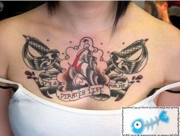 这胸部的纹身图案有点复古的味道吧_胸部纹身图案大全_纹身图吧