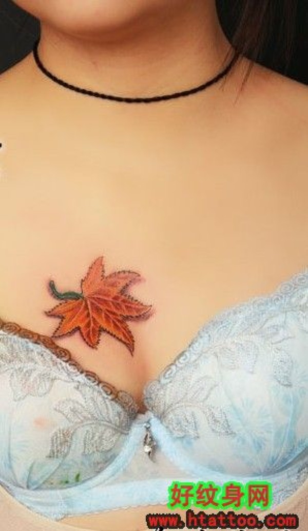 女生胸部枫叶纹身,小巧又时尚_胸部纹身图案大全_纹身图吧