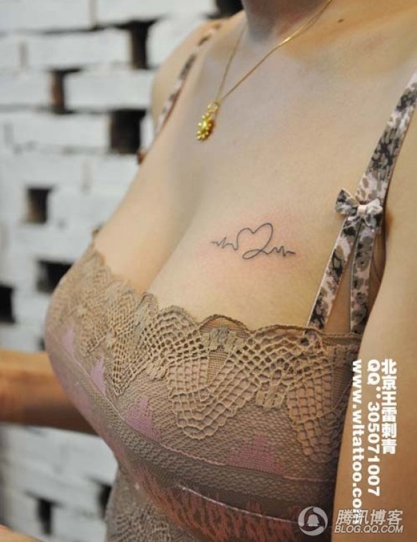 胸部的小清新心电图纹身_胸部纹身图案大全_纹身图吧