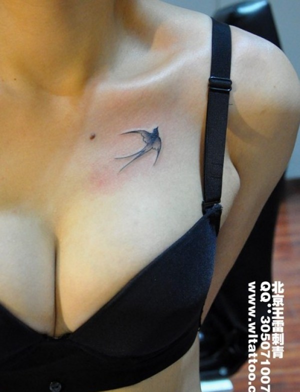 女性胸部小燕子清新纹身_胸部纹身图案大全_纹身图吧