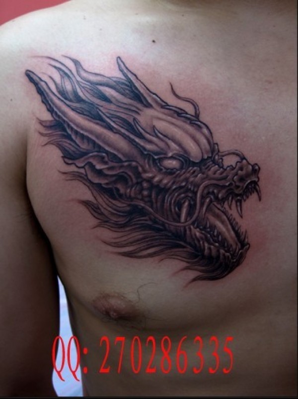 男人胸前超酷凶狠的狼头纹身图案_胸部纹身图案大全_纹身图吧