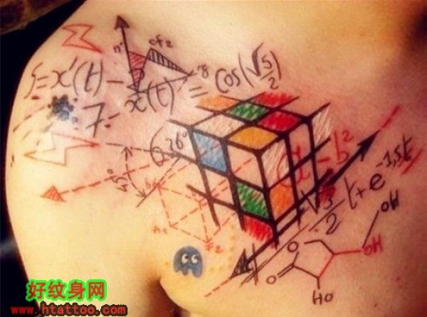 男人胸前彩色个性魔方另类纹身_胸部纹身图案大全_纹身图吧