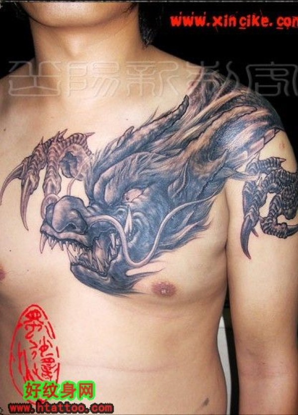 一个漂亮的披肩龙献上,送给社会哥_胸部纹身图案大全_纹身图吧