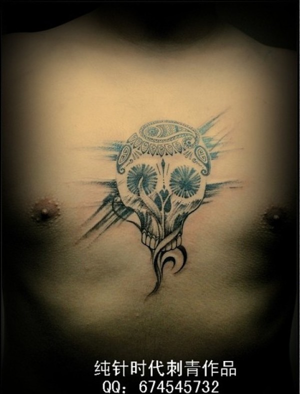 适合男性的纹身,胸部黑白骷髅纹身图案大全_胸部纹身图案大全_纹身图吧