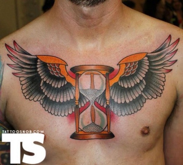 猫头鹰的翅膀和沙漏_胸部纹身图案大全_纹身图吧