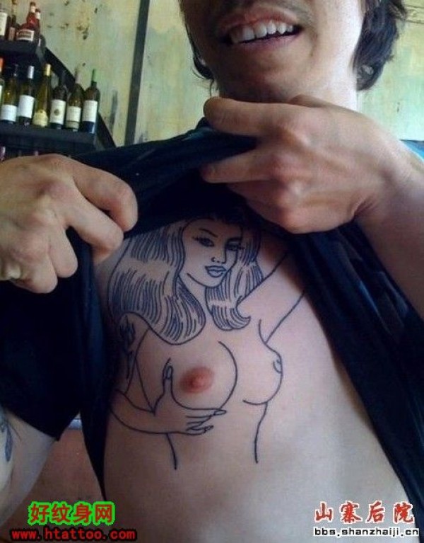 这个哥们胸部的美女纹身设计的太恶搞了_胸部纹身图案大全_纹身图吧