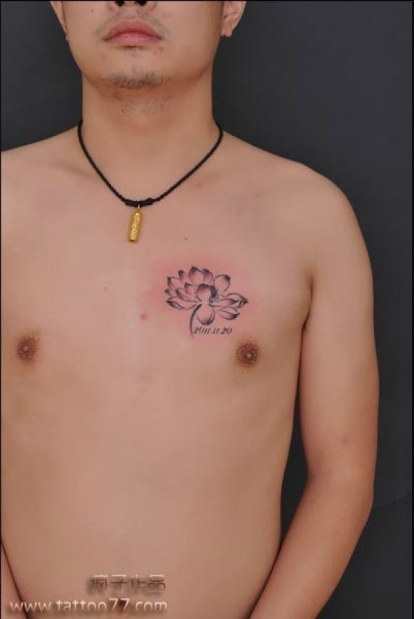 武汉老兵打造胸部荷花_胸部纹身图案大全_纹身图吧