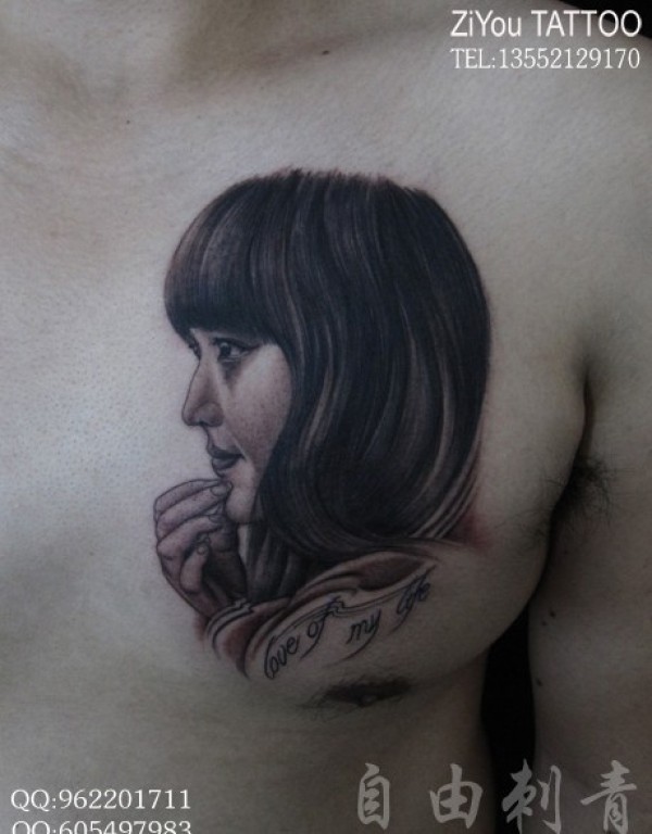 美女肖像纹身_胸部纹身图案大全_纹身图吧