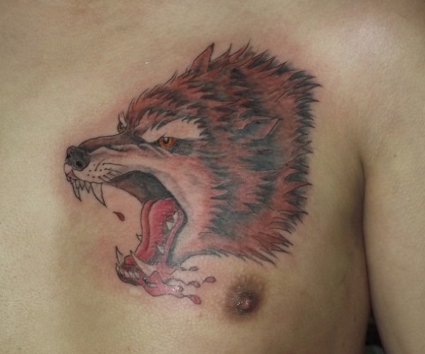 安庆惊魂纹身堂66纹身图库作品胸部狼头纹身图_胸部纹身图案大全_纹身图吧