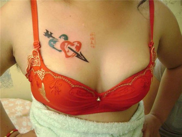 九江针功夫66纹身图库作品美女胸部爱心纹身图_胸部纹身图案大全_纹身图吧