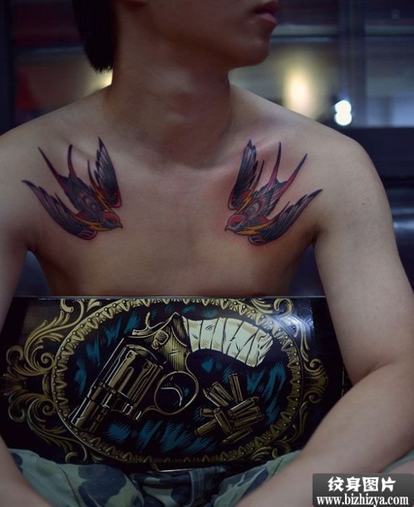 潮男胸前双燕个性纹身图案图片_胸部纹身图案大全_纹身图吧