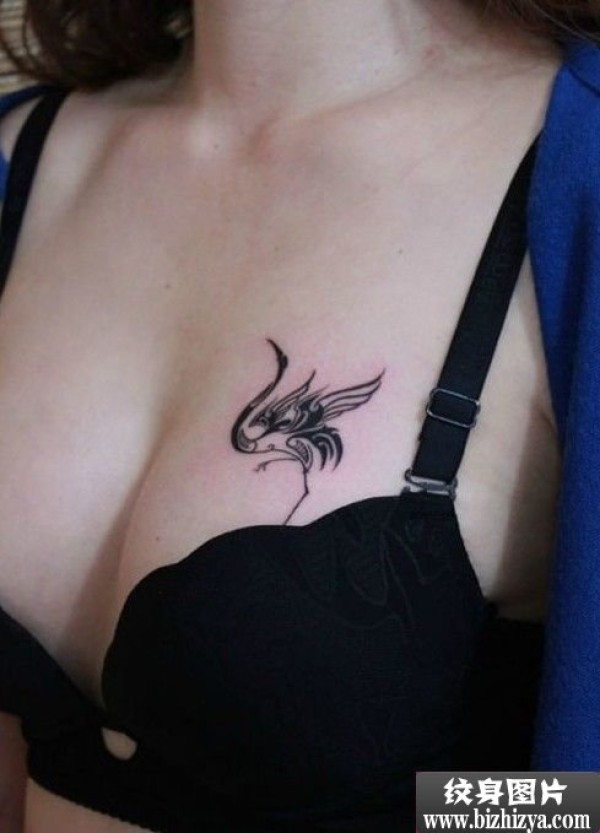 性感胸部丹顶鹤纹身图案图片_胸部纹身图案大全_纹身图吧