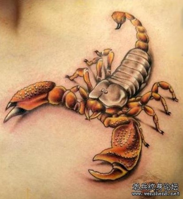 蝎子纹身图案胸部彩色蝎子纹身图案_胸部纹身图案大全_纹身图吧