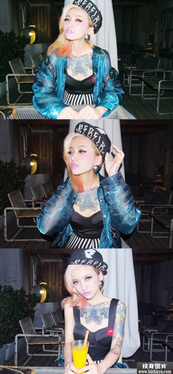 个性美女胸前霸气时尚纹身图案图片_胸部纹身图案大全_纹身图吧