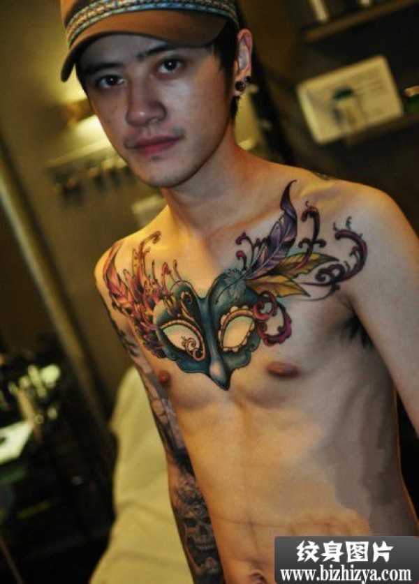 型男胸前时尚面具纹身图案图片_胸部纹身图案大全_纹身图吧