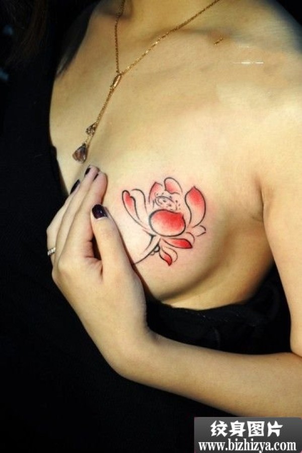 胸部美丽莲花刺青图案图片_胸部纹身图案大全_纹身图吧