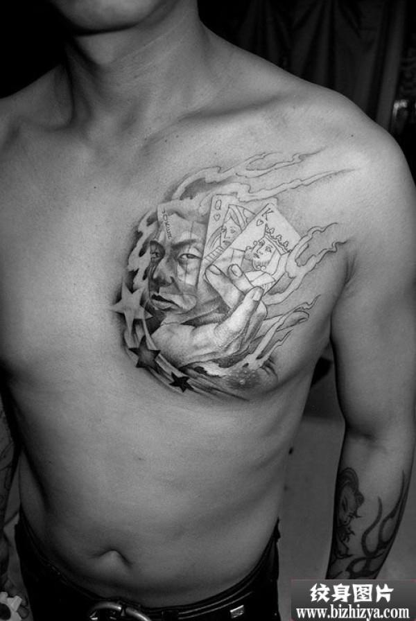胸前扑克牌Q和K图案图片_胸部纹身图案大全_纹身图吧