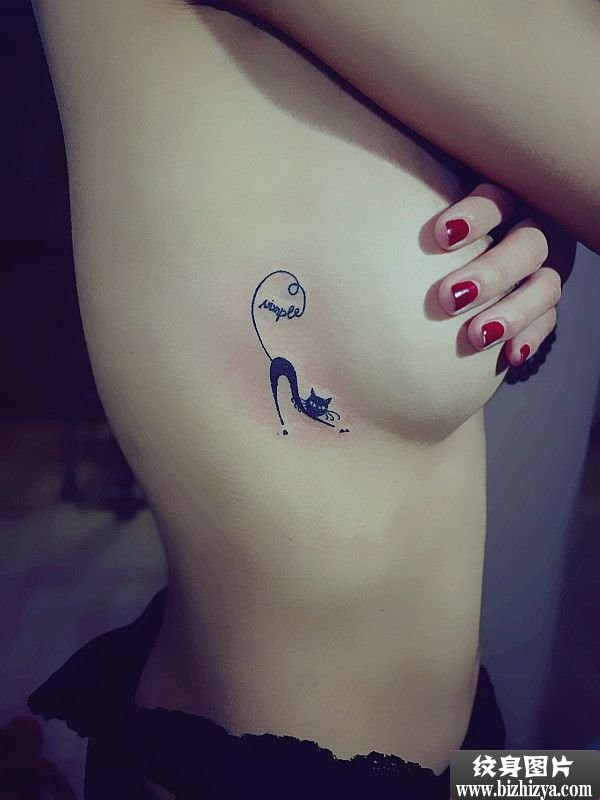 性感美女胸部猫时尚纹身图案图片_胸部纹身图案大全_纹身图吧
