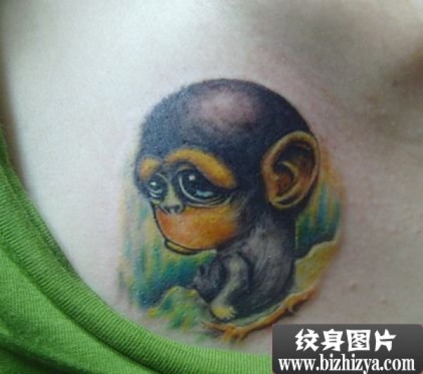 女孩胸前可爱小猩猩纹身图案图片_胸部纹身图案大全_纹身图吧