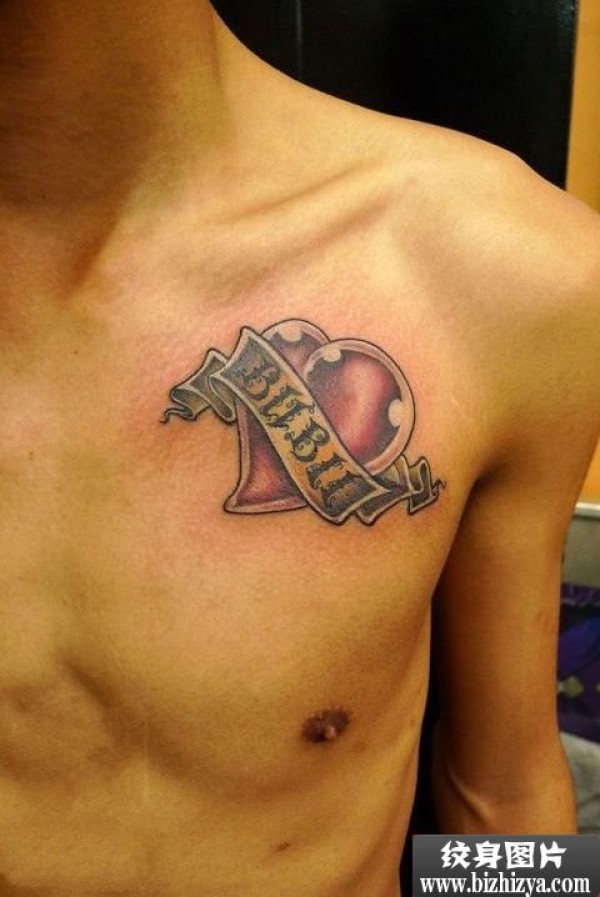 胸前红心刺青图案图片_胸部纹身图案大全_纹身图吧