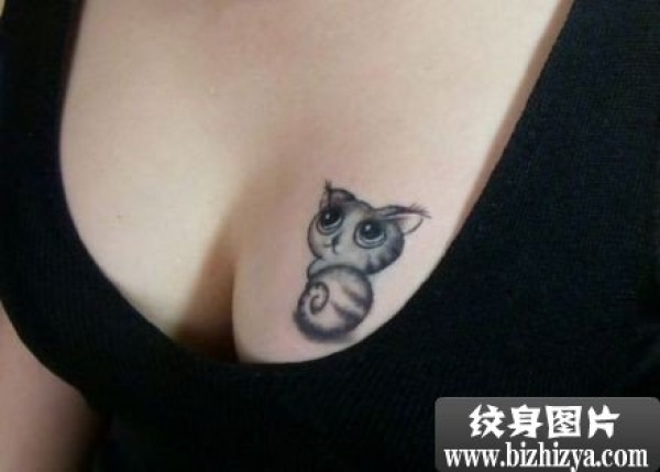美女胸部可爱猫咪纹身图案图片_胸部纹身图案大全_纹身图吧