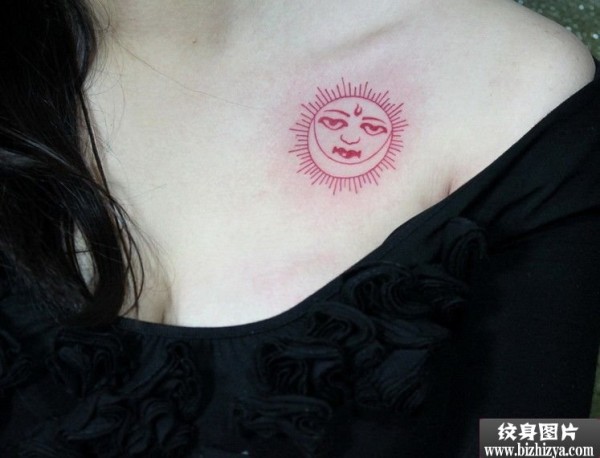 美女胸前太阳神个性纹身图案图片_胸部纹身图案大全_纹身图吧