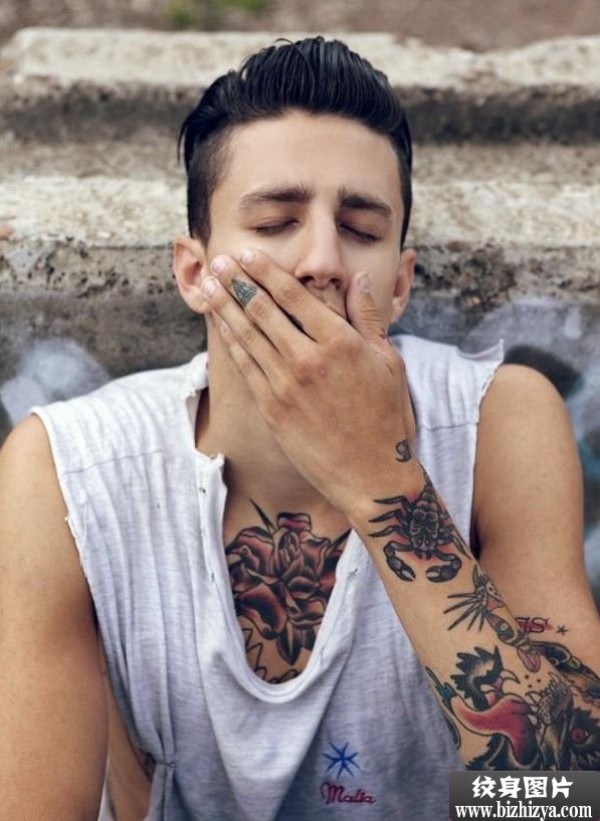 男生手臂胸前时尚纹身图案图片_胸部纹身图案大全_纹身图吧