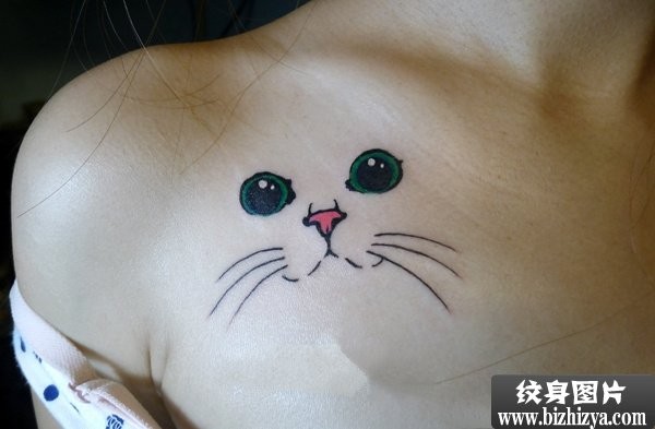 美女胸部上猫咪纹身图案图片_胸部纹身图案大全_纹身图吧