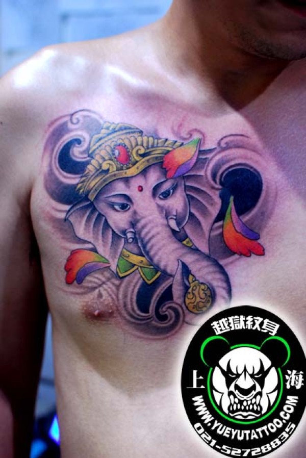 胸部象神纹身图案上海越狱纹身店作品_胸部纹身图案大全_纹身图吧