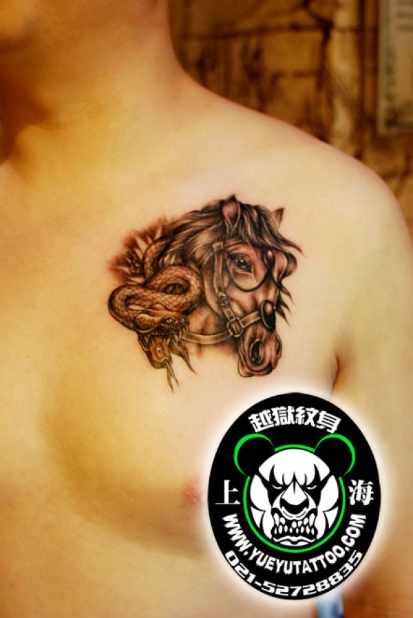 胸部马与蛇纹身图案_胸部纹身图案大全_纹身图吧