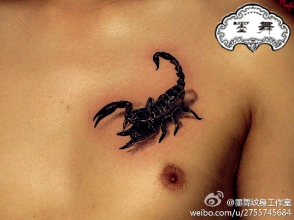 男人胸前超酷霸气的蝎子纹身图案_胸部纹身图案大全_纹身图吧