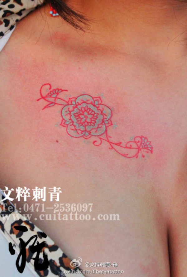 美女胸部时尚性感的蕾丝纹身图案_胸部纹身图案大全_纹身图吧