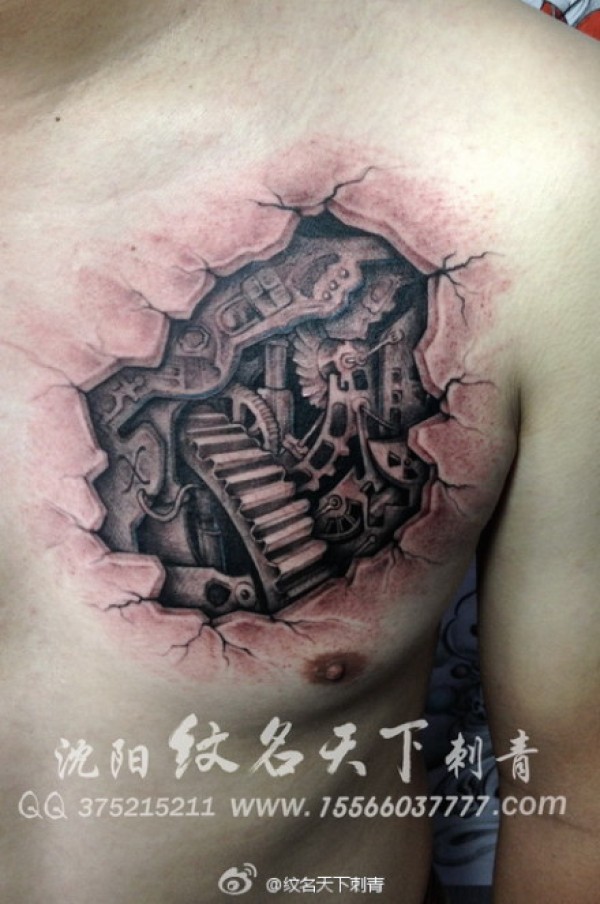 男生胸前超帅的机械纹身图案_胸部纹身图案大全_纹身图吧