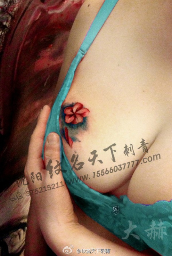 美女胸部漂亮精美的小花卉纹身图案_胸部纹身图案大全_纹身图吧