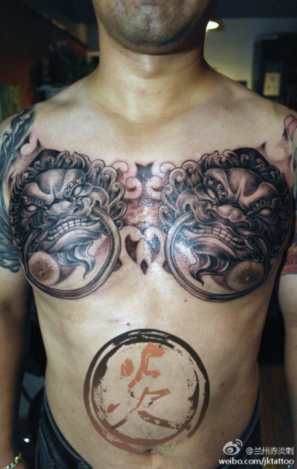 男人胸前很酷的兽面衔环铺首纹身图案_胸部纹身图案大全_纹身图吧