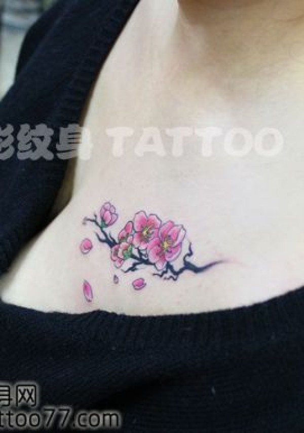 美女胸部好看的彩色樱花纹身图案_胸部纹身图案大全_纹身图吧