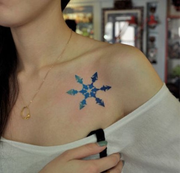 女孩子胸部精美时尚的彩色雪花纹身图案_胸部纹身图案大全_纹身图吧