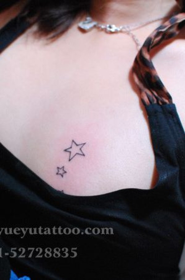 美女胸部精致的五角星纹身图案_胸部纹身图案大全_纹身图吧