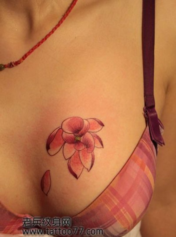 女孩子胸部精美的彩色莲花纹身图案_胸部纹身图案大全_纹身图吧