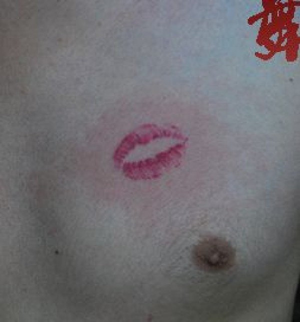 男生胸部一款彩色唇印纹身图案_胸部纹身图案大全_纹身图吧