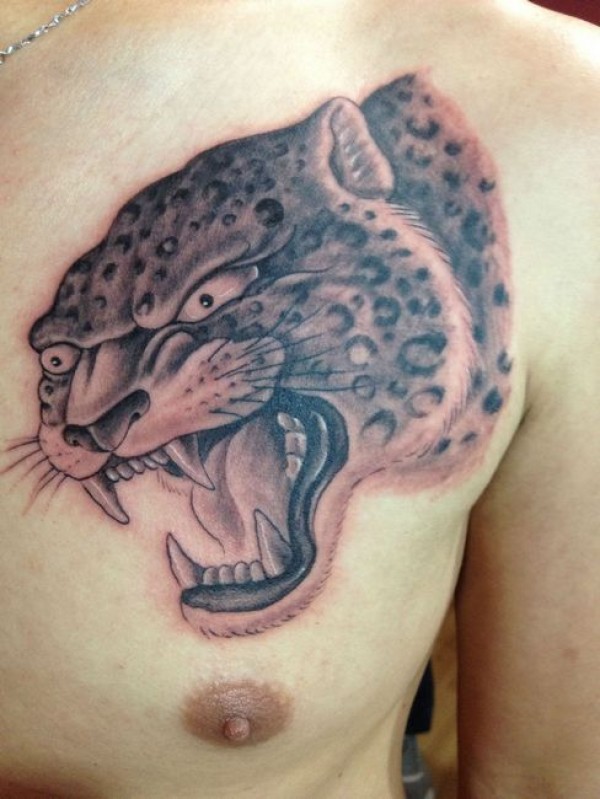胸部霸气的豹子头纹身图案_胸部纹身图案大全_纹身图吧