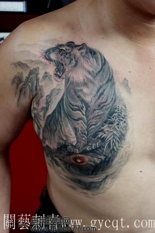 胸部霸气的上山虎纹身图案_胸部纹身图案大全_纹身图吧