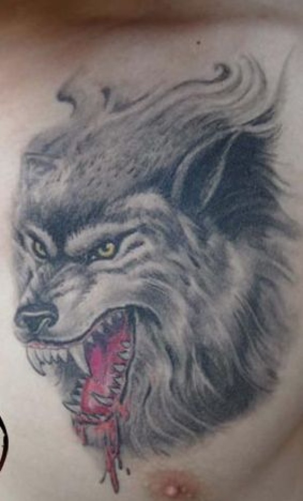 超霸气胸部滴血狼头纹身图案纹身图片_胸部纹身图案大全_纹身图吧