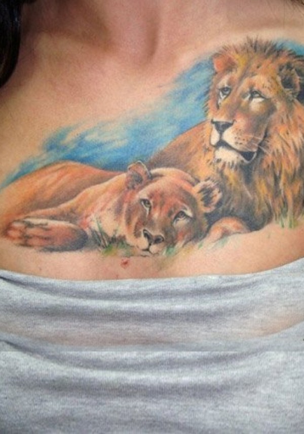女人胸前狮子纹身_胸部纹身图案大全_纹身图吧